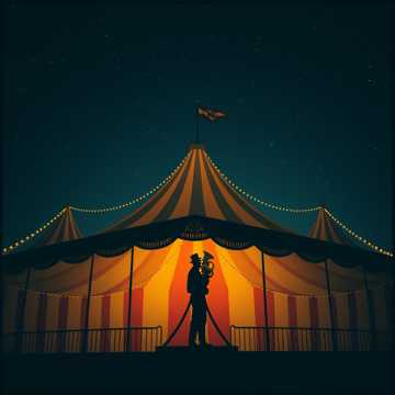 Xylophone Ominous Dark Fugue Electro Swing Circus Orchestra layering cinematic majestic brass complex sinister drums percussion fast complications relentless surprising presto