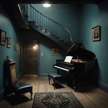 The dark trip-hop soundtrack unfolds with pulsing bass and tactile minimal beats at 80 BPM, driven by cinematic tension, Dissonant piano phrases punctuate the space, while tremolo strings and metallic percussive layers swirl atop granular pads and atmospheric field recordings, Rhythmically delivered spoken-word floats above, The track shifts into a hypnotic 7/8 instrumental break, amplifying suspense with twisting electro-acoustic textures, before an abrupt, disintegrating fade closes the piece