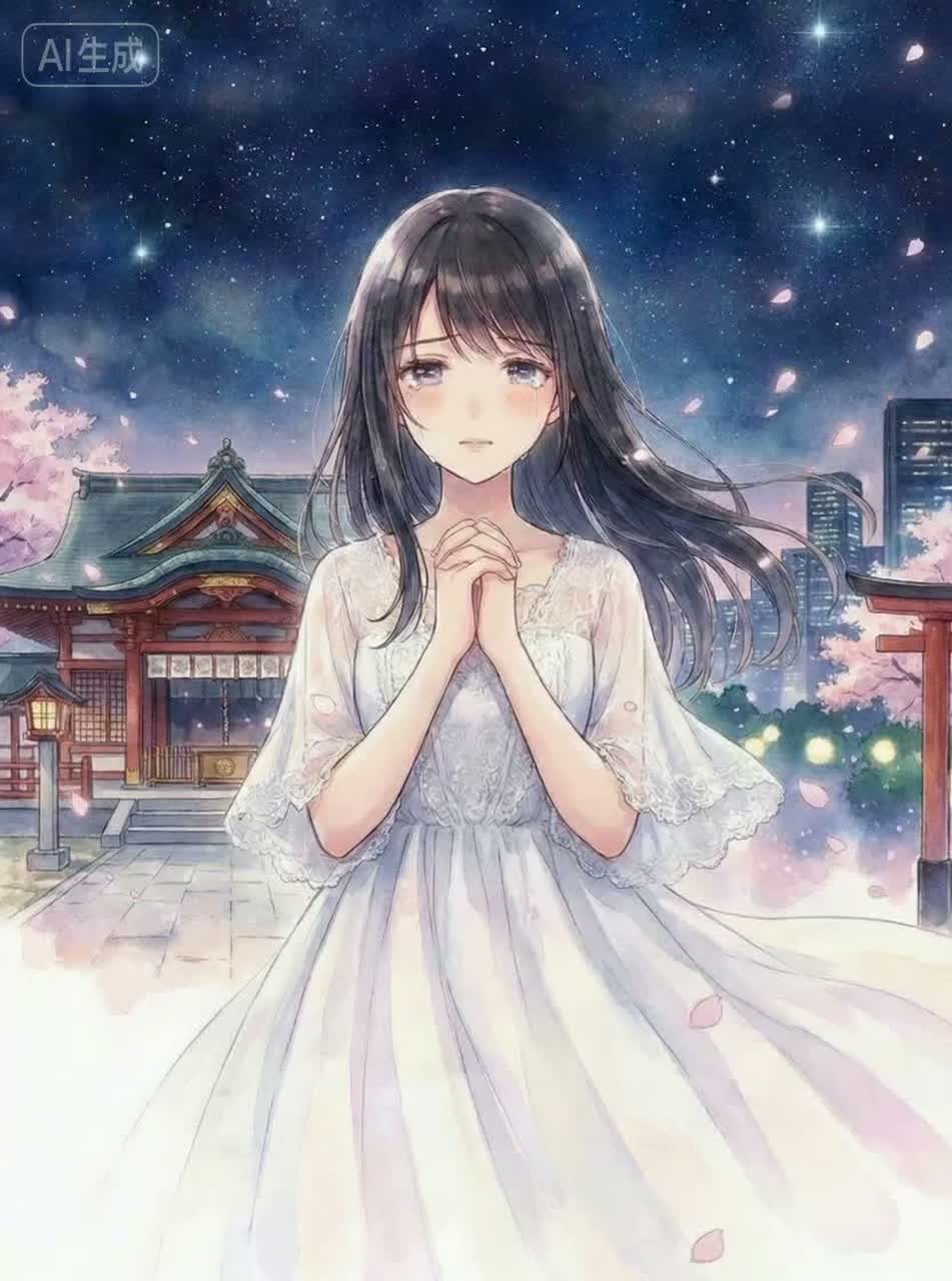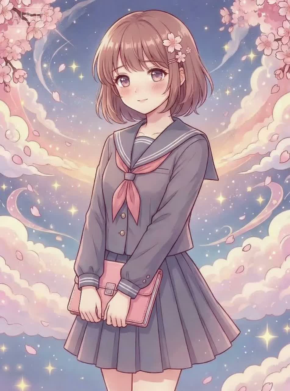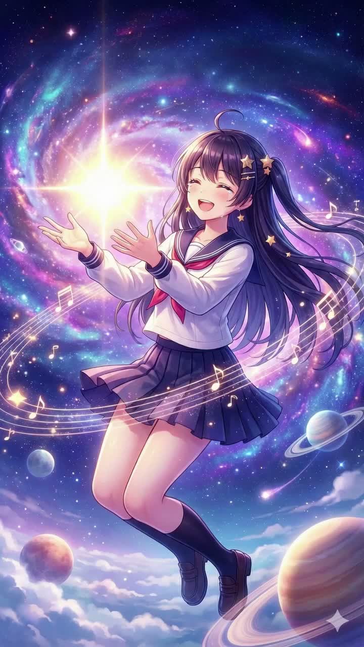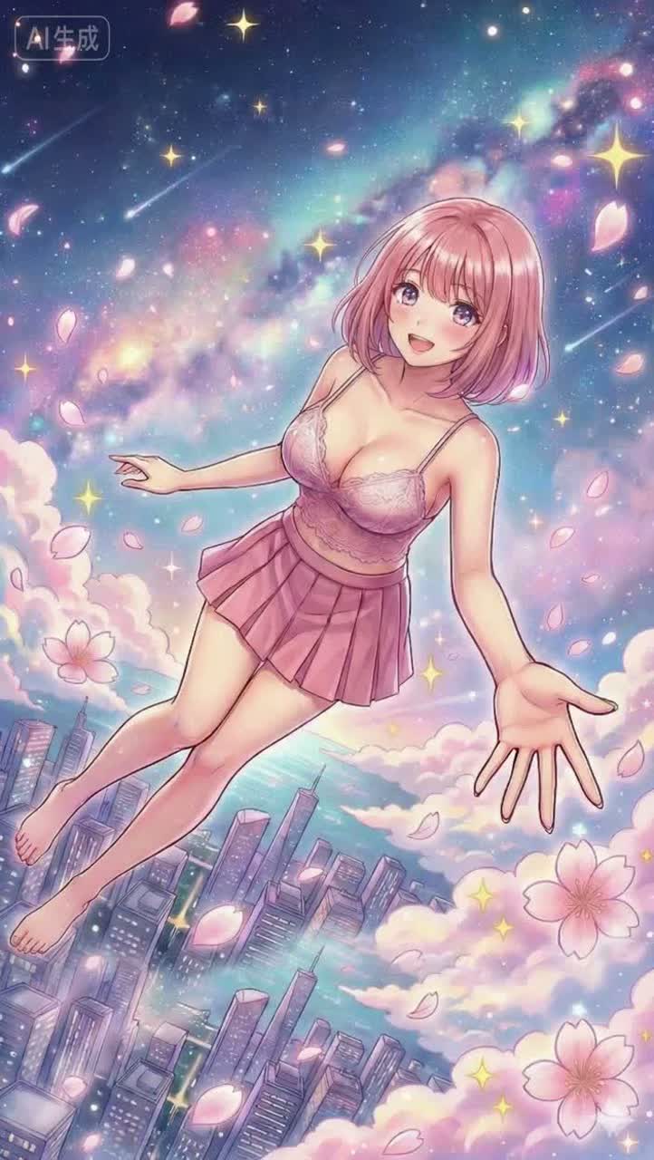 [Genre: Dreamy J-Pop Fusion with sakura-galaxy vibes—blending bubbly electro-synth beats, twinkling cherry blossom chimes, and cosmic star synths like a sweet Tokyo-metaverse romance, infused with playful vocal harmonies and unique rhythmic pauses for a fresh, viral hybrid flavor that's ultra-kawaii and addictive, merging sakura dreams with starry love as an encompassing sweet universe] [Structure: Start with enchanting intro chorus for instant hook; serene verses with peculiar, fluttering rhythms like falling petals in starlight with dramatic pauses for emotional depth; explode into lively choruses with soaring highs, special techniques like breathy whispers erupting into vibrant belts, and quirky melody stops—sudden pauses mid-line for suspense, then joyful cosmic bursts; include whimsical interval designs with petal-star echoes and rhythmic skips for sing-alongs; vary with a dreamy bridge blending sakura whispers into galactic swells, leading to extended final chorus blend;