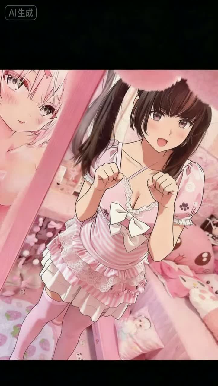 cute Japanese-English J-pop, soft female vocal, romantic shoujo anime vibe, pastel pink bedroom, sweet and dreamy atmosphere, upbeat but gentle tempo, sparkling synths, light guitar, kawaii sound effects, catchy kawaii chorus with easy English, Japanese phrases sprinkled in, focus on feelings of first love, warm sunlight through the window, soft reverb, bright mix, idol-style chorus, cute claps, shimmering bells, emotional but happy ending, modern anime opening style