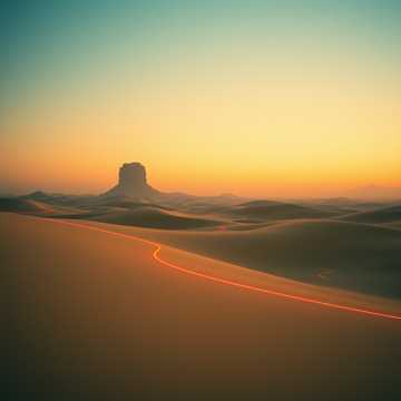 A desert house track over 4 minutes at 100bpm begins with hazy Rhodes and lush ambient pads, Snappy, swung TR-808 drums set a hypnotic groove as synth layers swell, muted distant guitar adds intrigue, and a warm rounded bass grounds the mix, Piano motifs drift throughout, while high-energy drops contrast melancholy harmonies with vibrant chord stabs, building a dynamic, evolving desert house atmosphere