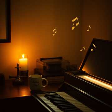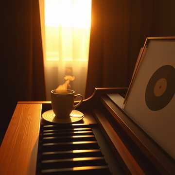 Dusty café jazzhop at 80 BPM, E minor, Brush kit upfront with soft ride simmer and a gentle, round snare on 2 & 4; upright bass walks in simple outlines of Em9 – Am9 – B7(b9) – Em9, Warm, close-miked piano carries the changes and melodies, intro as sparse chords then blooming into head figures, Background trumpet-like synth hits land as rare, single-note punctuations deep in the mix, Middle breakdown drops to solo piano voicings, then returns to the main A section with a mellow pad swelling subtly under the harmony for a late-night, steam-on-the-window feel, warm, gentle, simple, soft, bright