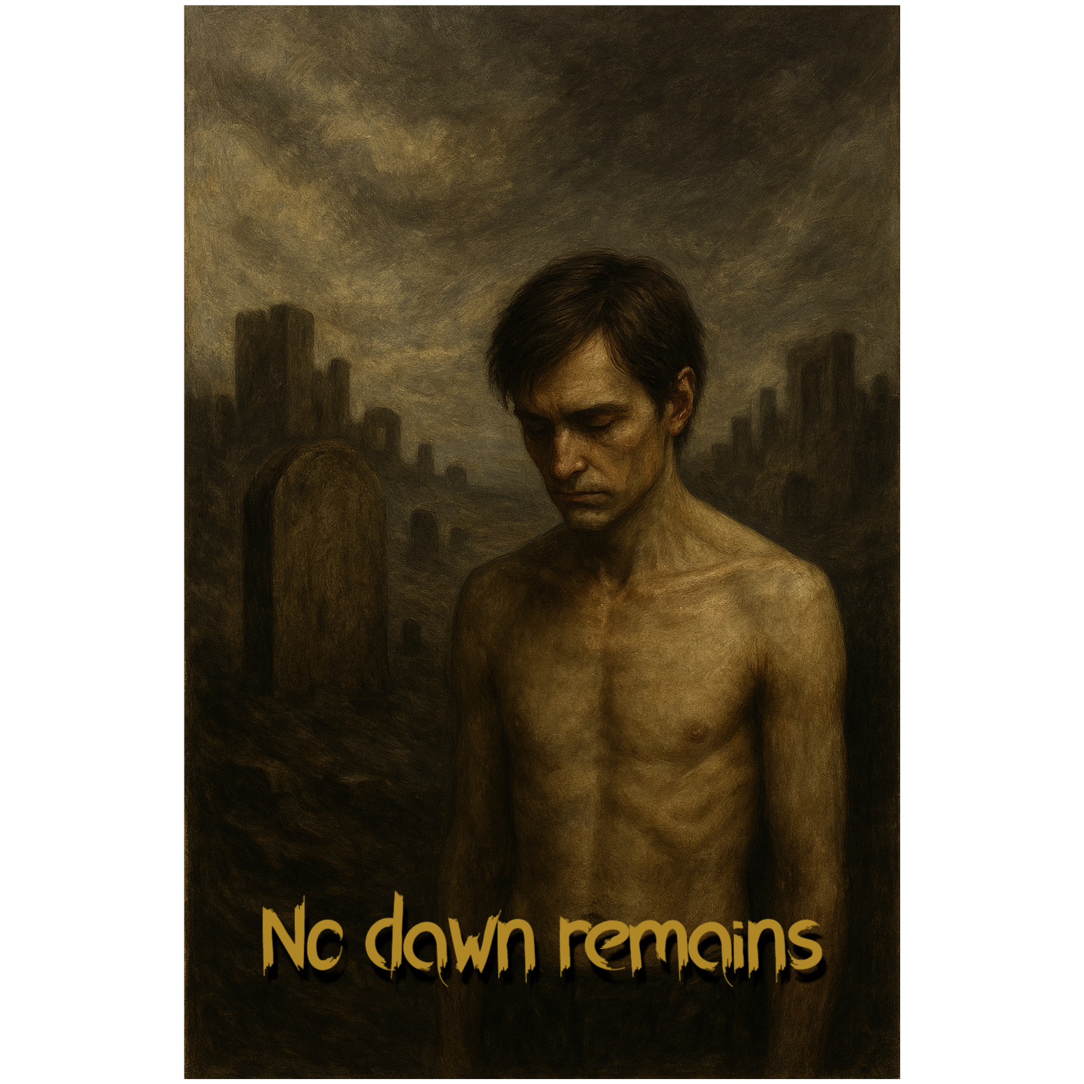 Instruments: vibrato strings, viola, Lead Guitar, Rythm Guitar, Bass, Drums, dark synth, Vocal: Deep male Vocal, grim