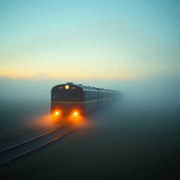 Progressive folk rock, atmospheric ballad with train-like chugging rhythms, acoustic guitar intros building to electric layers in open tuning, introspective male vocals with harmonies and echoes, subtle polyrhythms and ambient sound effects (e, g, train whistles), mood: nostalgic melancholy turning hopeful, BPM 85