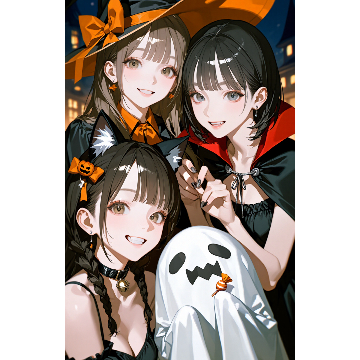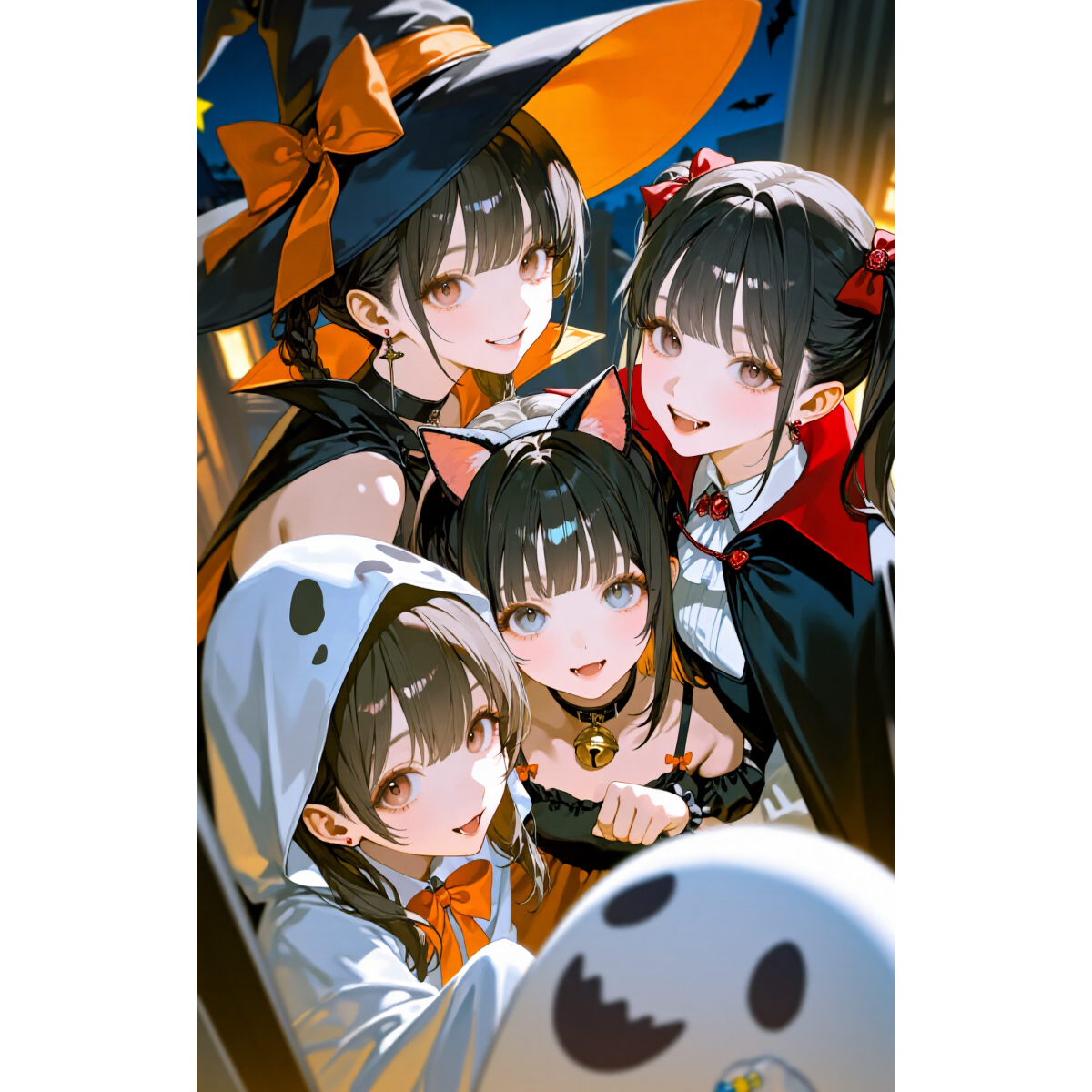 Style:Spooky yet cute Halloween Toy Pop song, with a groovy synth bass and a catchy beat, The tempo should be slightly fast, with a bright and playful synth melody reminiscent of 8-bit games, Add cute spooky sound effects like ghostly whispers and distant cackles, The overall mood is cheerful, mischievous, and a little bit silly, The vocals should be a mix of rhythmic, almost spoken-word sections and a melodic, sing-along chorus
