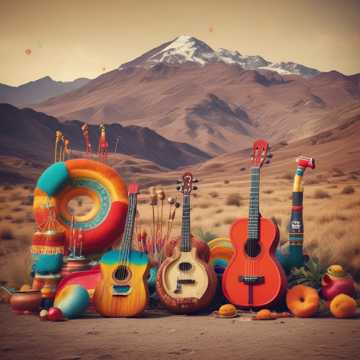 quena, and bombo drum, bright, lively, festive rhythms and celebratory energy, andean huayno with charango