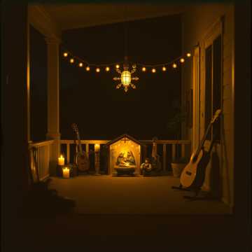 Festive mariachi in D minor, bright trumpets and vihuela strums over warm nylon-string guitar; mid-tempo groove with playful guitarrón runs, Verses stay intimate and close, lead male vocal up front; chorus blooms with stacked family-style harmonies, sleigh bells, and soaring trumpets that lift the last line each time, mariachi