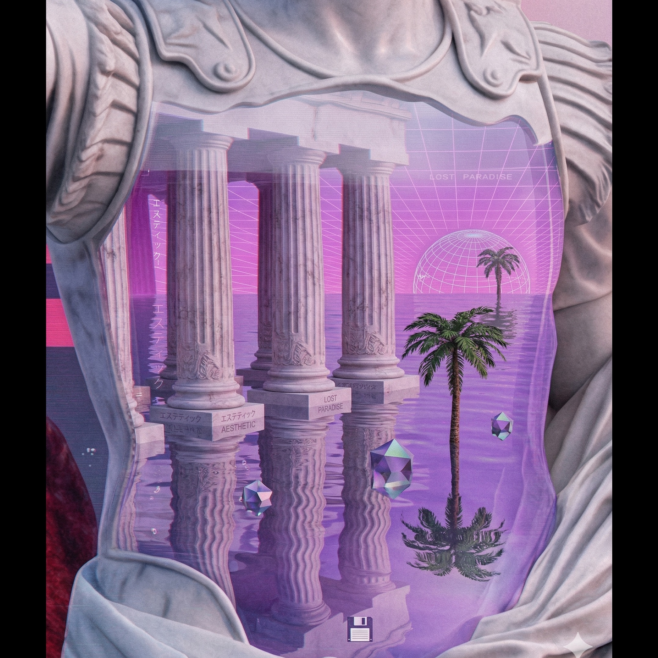 Hazy lo-fi mallsoft x chopped & screwed, Detuned synths, lush reverb, slow pitched-down beats, Dreamy, surreal atmosphere, warm analog saturation, muffled vintage drum machine, melancholic drifting oscillators, tape flutter digital stuttering, rhythmic tape-stops, bitcrushed artifacts, midnight isolation