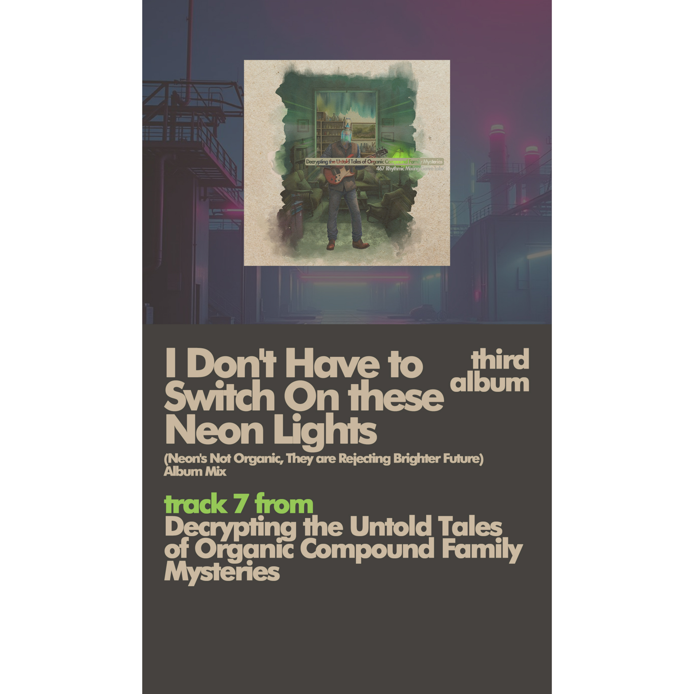 New Rave, Post-Punk Revival, Indietronica, Art Pop, Progressive Pop, Calypso influenced, 5/4 time signature, Not 4/4 time signature, Key: C# Dorian, moog, hyperflip influence, prog-rock influence, art rock influenced, synthwave, intricate drumming, raw guitars, pipes, double bass, trombone, Maraca, Conga rush, Stylophone, Glitchy Digital Audio Workstation, Highest Quality, Wide Stereo Image, Album Master, Award-Winning Engineer, 467rmgl