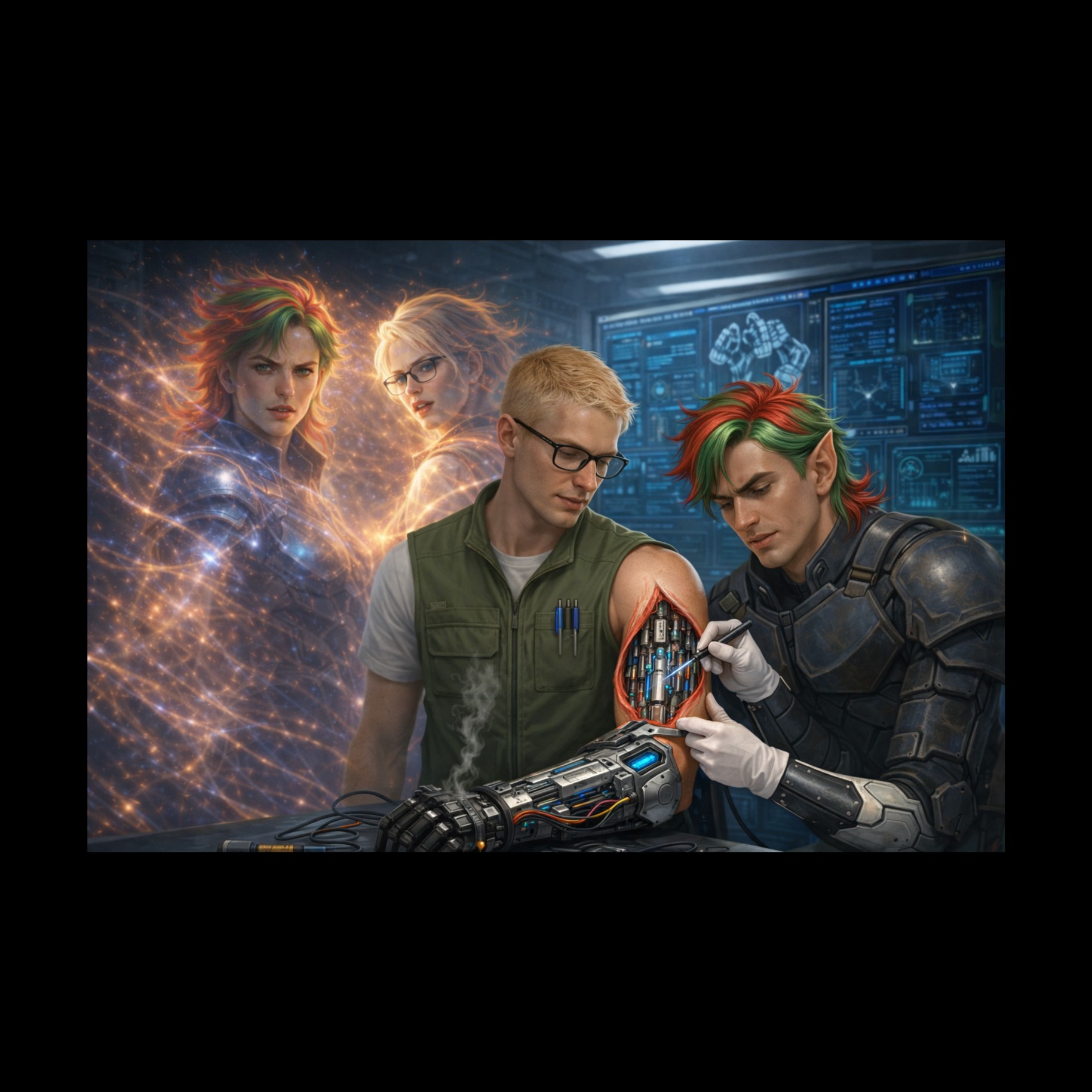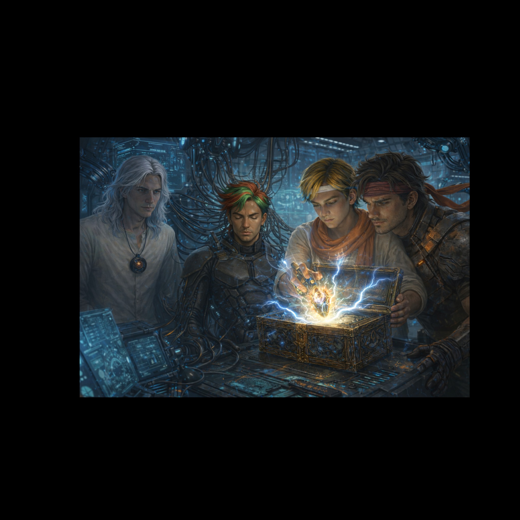 violin, harpischord, emo, rythme pulsé, chorus symphonic, tambour, rythme angoissant, guitar electric, synth-wave, dark techno, drum and bass