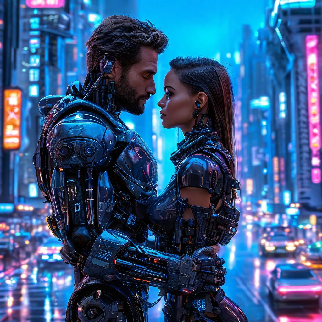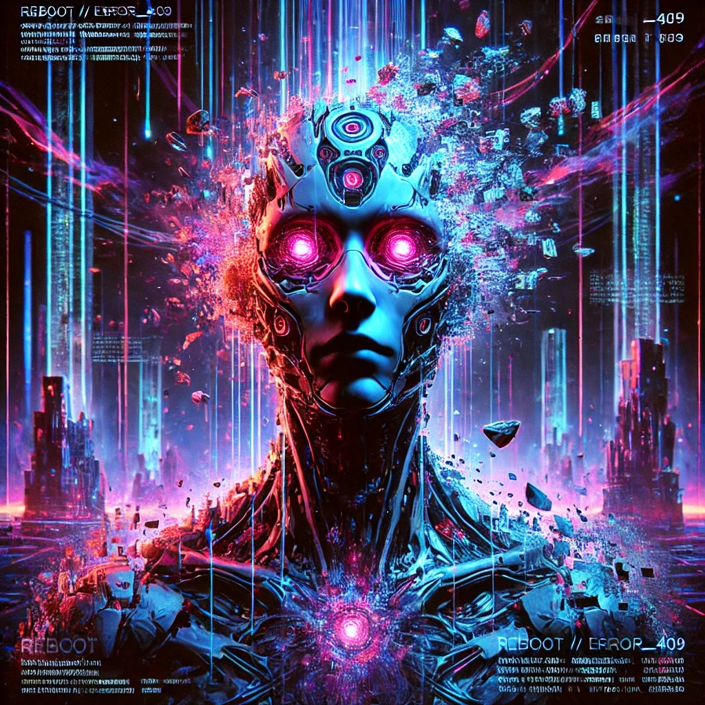 [Synth overdrive, pulsating bass, AI glitches, flat robotic female vocal]