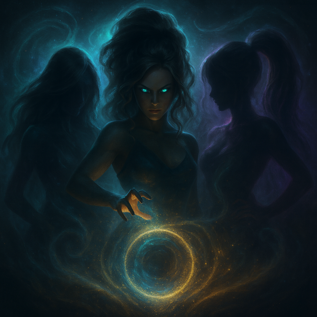 Mood: Dangerous playfulness, hypnotic menace, teasing confidence, magical tension