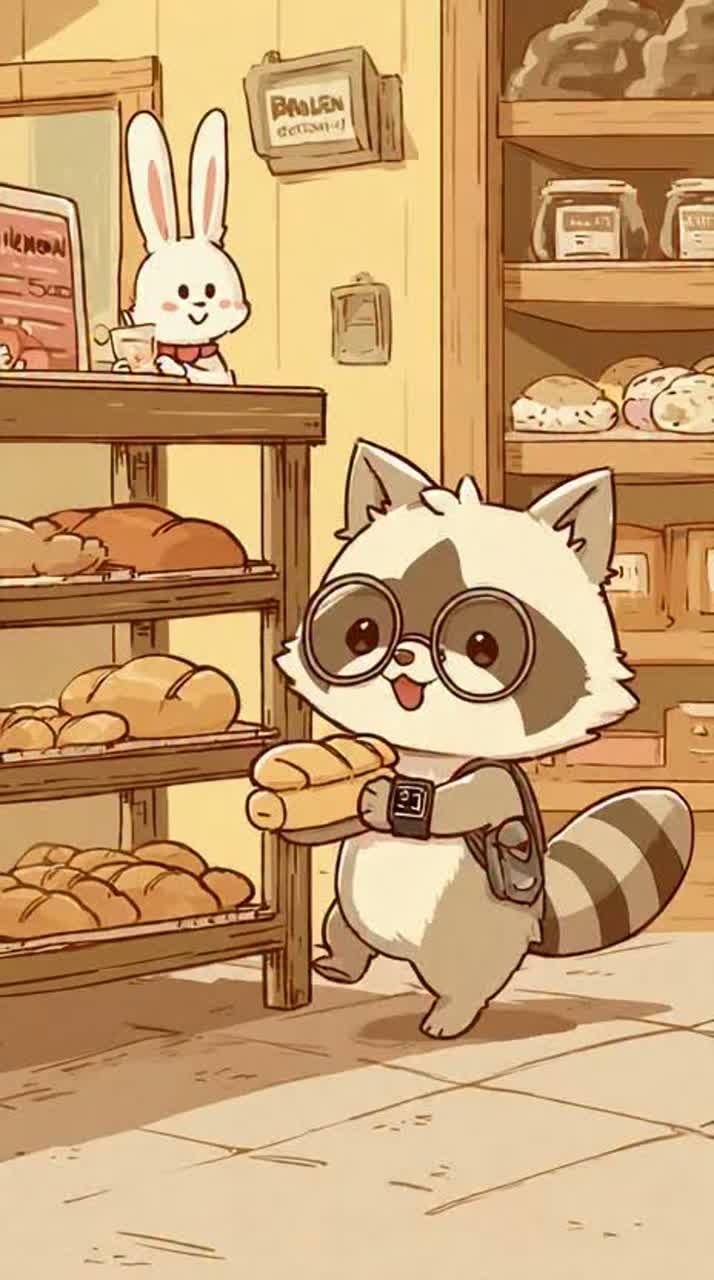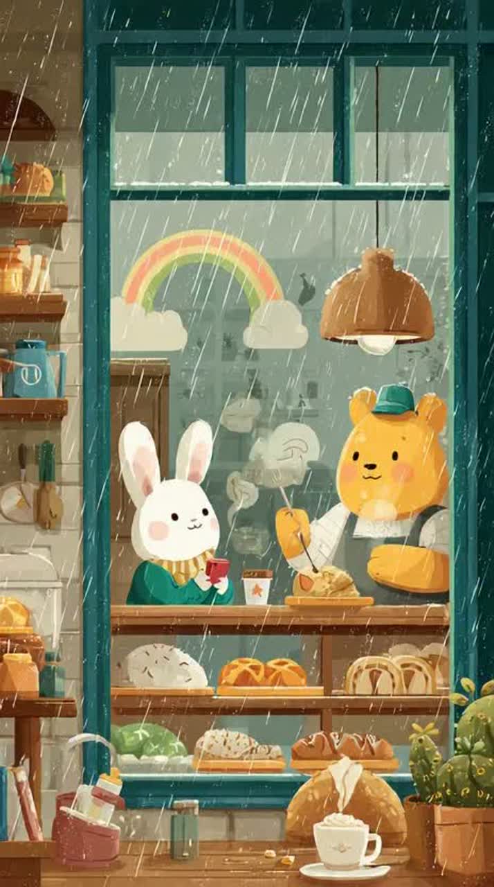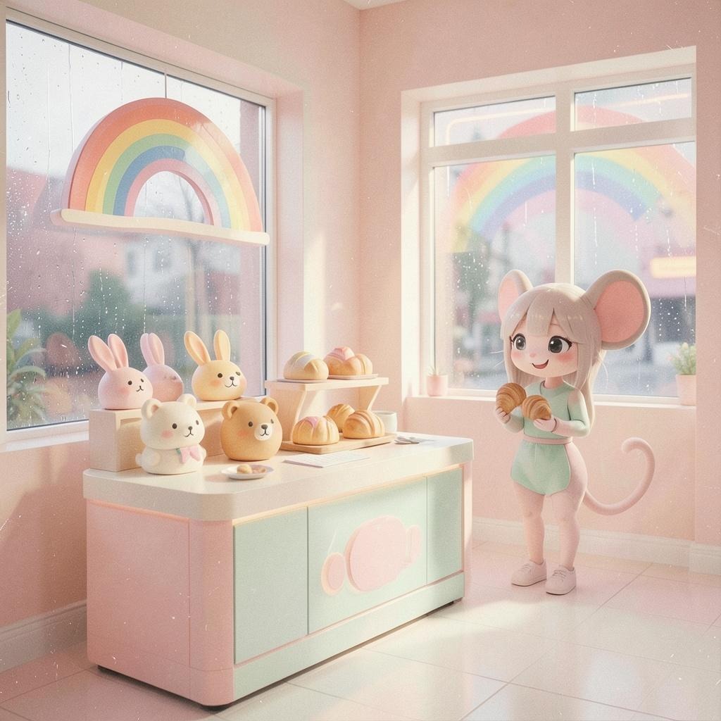 Description: A modern retelling of a bakery story, A cute young girl whispers a bedtime story about a Rabbit and a Bear opening a trendy bakery, Focus on soft speech and "ear-cleaning" style vocal clarity