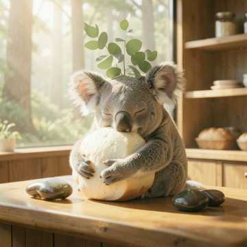 Female soft young voice, whispering, ASMR, spoken word, no music, no electronics, organic atmosphere, slow tempo, peaceful, gentle breathing, warm and cozy Japanese narration, Description: A story about a slow-moving Koala visiting a traditional forest bakery, Very calm and sleepy atmosphere, Focus on soft whispers and natural pacing