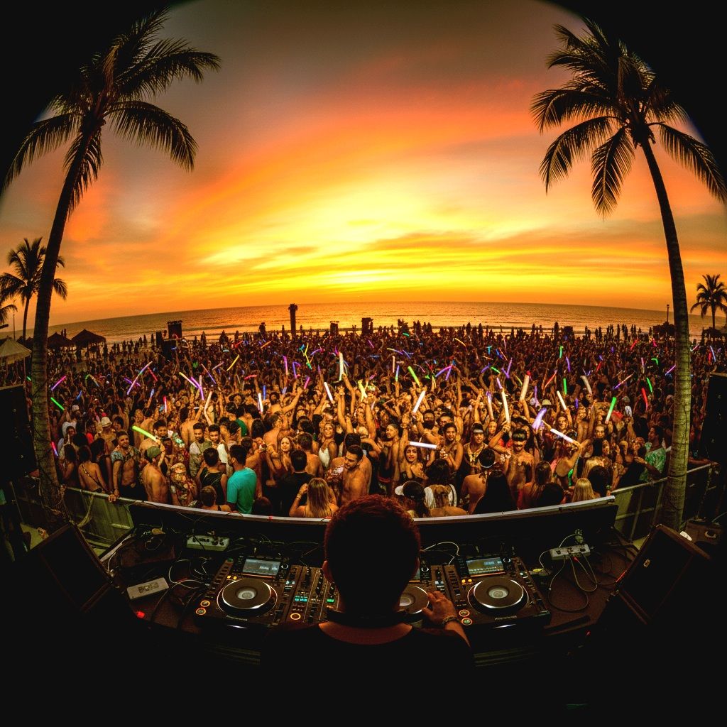 Liquid Drum and Bass, Female Caribbean accent vocals with silky soulful tone, summer anthem, Latin-inspired acoustic guitar riffs, funky strumming, rolling sub-bass, 174 BPM, crisp breakbeats, golden hour vibes, euphoric, polished, Starts acoustic, heavy drop at hook