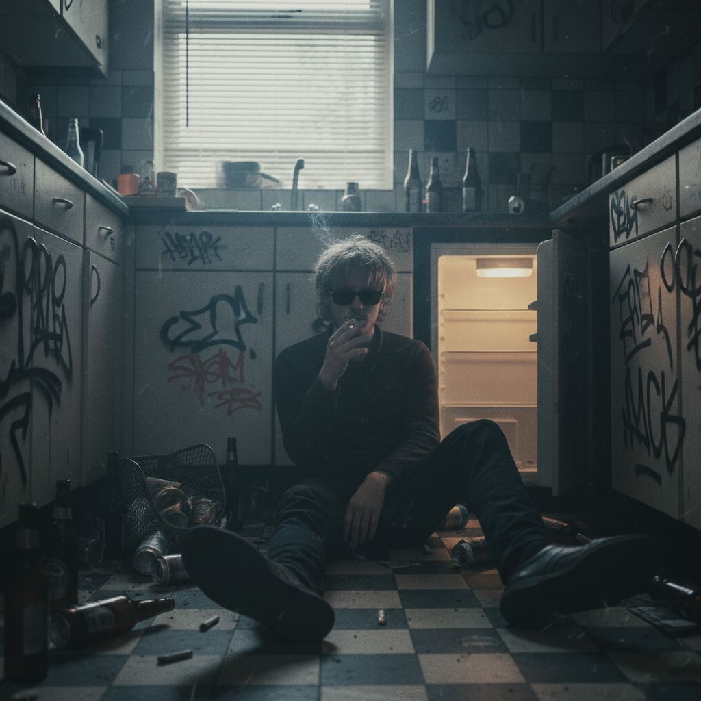 Produce a moody, intimate house‑tempo track in A major at 124 BPM with a cold, reflective texture rather than energetic dance energy, Focus on crunchy, tactile synths and rhythmic electronic percussion that feels deliberate and slightly raw, Bass should be deep and pulsing but not warm or uplifting — more melancholic and grounded, Add subtle organic elements like an acoustic guitar riff with sparse reverb and muted tones, serving texture rather than brightness, Male vocals should be soft, tender, soulful, and intimately expressive, with clear pronunciation and a direct emotional delivery, Keep the instrumental layers gritty, layered, and evocative rather than lush or airy, The overall mood should be introspective and melancholic yet rhythmic, with a slightly detached electronic sound, "