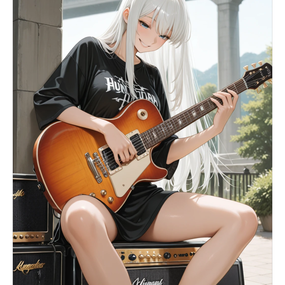 raw teenage rock’n roll, garage style, Gibson SG tone, key A7, tempo 160BPM, boy vocal, shouting and passionate, youthful and rough, simple and catchy chorus, extremely cool guitar intro riff, guitar fills between vocal lines, strong live drum kit, heavy bass, natural amp distortion only, raw and sweaty sound, burning bluesy guitar solo, feedback outro, feeling of freedom, friendship, joy, heat, reckless but pure energy, slogan: “No guitar, No Future!”, influence: early punk and 50s rock’n roll, Japanese youth rock spirit
