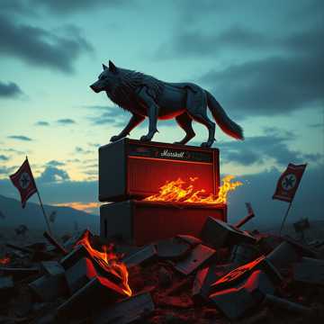 first emotional crying lead, second fast shredding with tapping and sweep picking, Heavy breakdown after solo, Short intense scream vocals after breakdown, Final chorus louder and more aggressive, Outro with guitar feedback, AI buffer glitch → transformer lock-in
