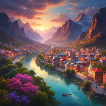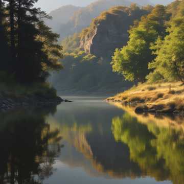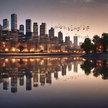 walking through the city and then along river in the deep valley, guitar, piano, uplifting
