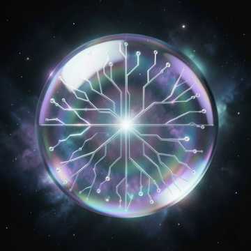Glassy arps over deep-sidechain electronic groove, mid-tempo, Verses minimal with pulsing bass and sparse plucks; chorus widens into lush pads and stacked male vocals, Subtle glitch fills and filter sweeps keep it sci-fi, with a soaring, reverb-drenched bridge that feels like jumping to quantum travel, electronic