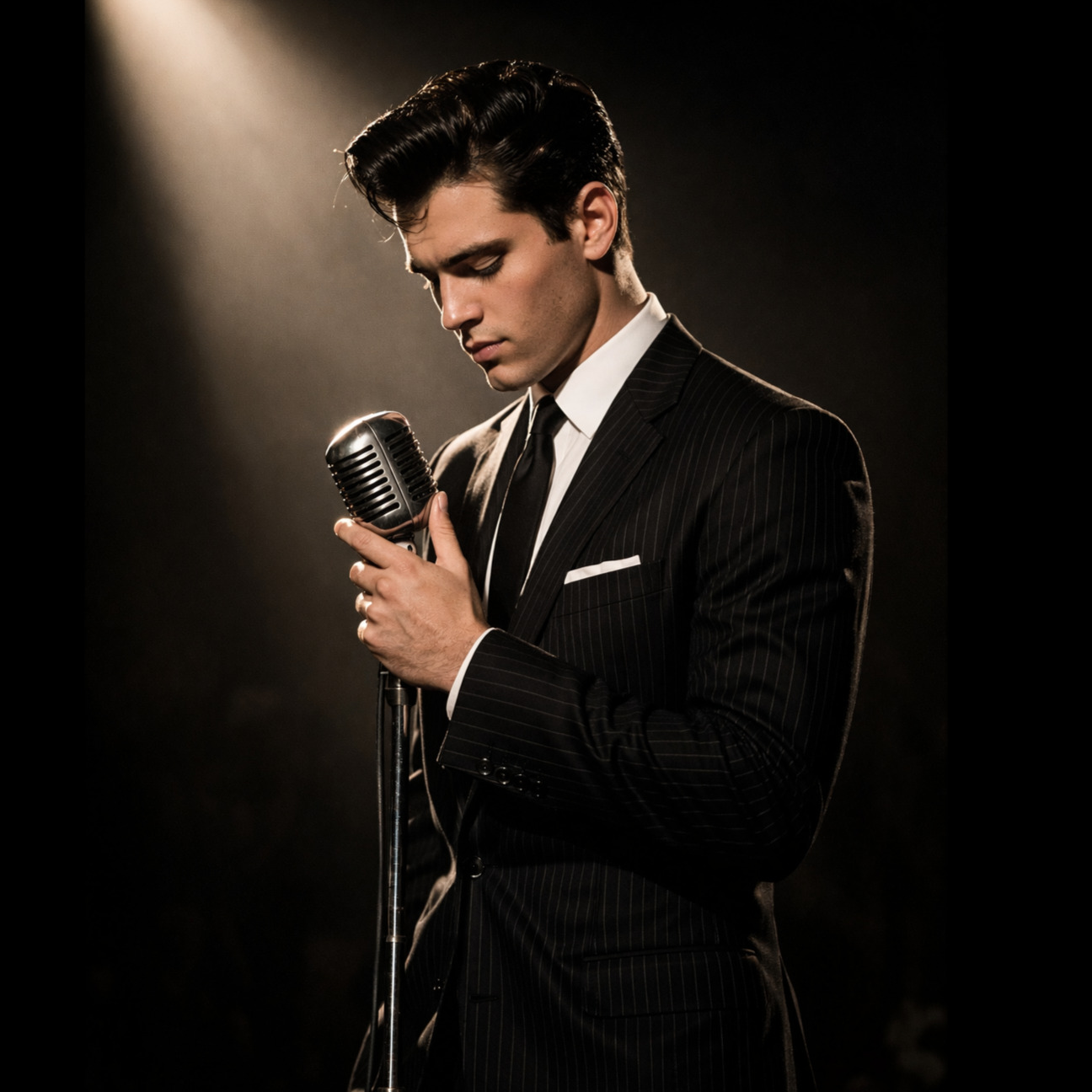 Rock and roll, rockabilly, 50's, driving beat, sultry male voice, stomp, clap, clean vocal