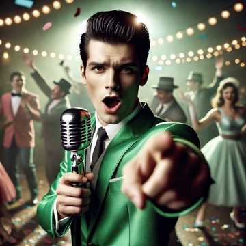 Doo-Wop, Rockabilly, upbeat, energetic, barbershop quartet, [finger snapping, clapping], stomping, bouncy, catchy, spoken word