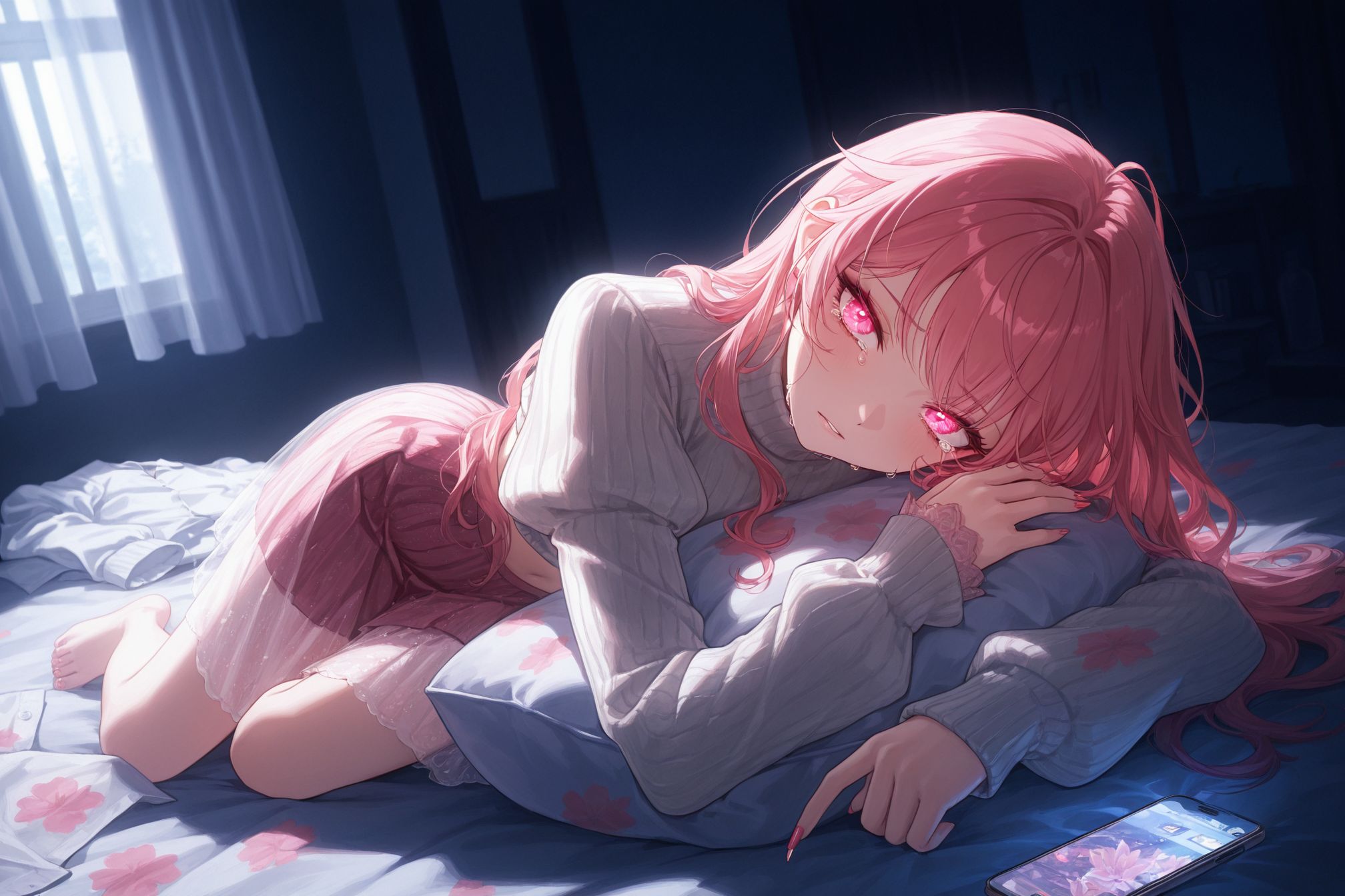 [Style: A playful song that mixes serenade with Chillwave, R&B, Slacker Rock and jazz, A dreamy, Sentimental, Melancholic, with heavy distorted bass, piano, metallophone, triangle, Dissonant Music Box and strings, Atmosphere of a moonlit night, ][Vocal:Jp kawaii female vocals, A soft, whispering, and cute voice with a touch of youthfulness, Contains "1/f fluctuation" for a gentle, heart-wrenching quality that comforts the listener, Emotional famale vocal, ]