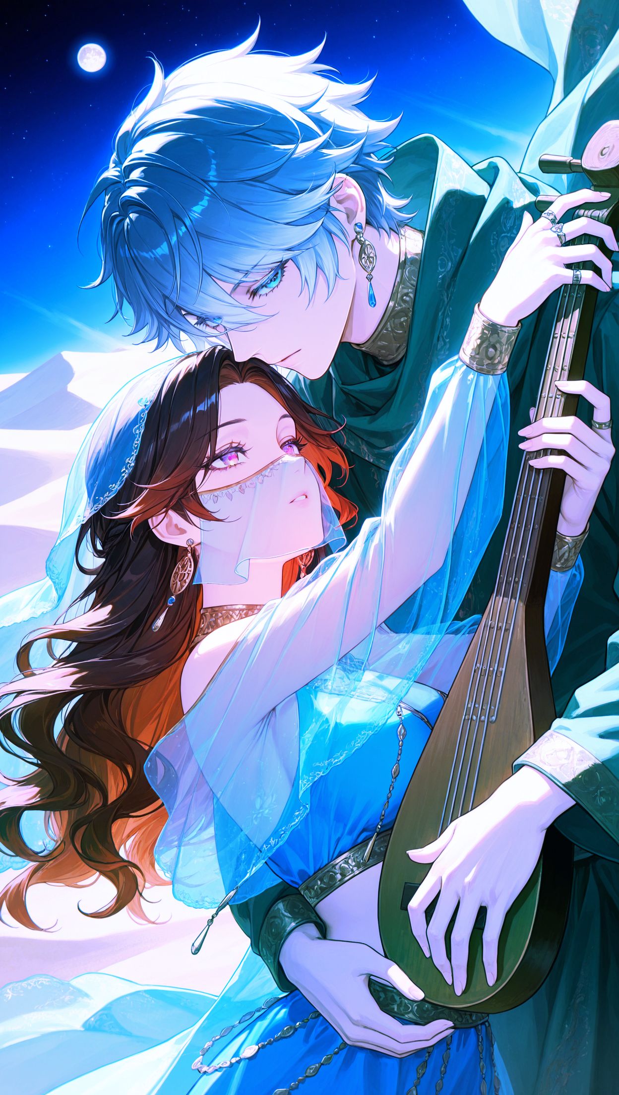 [Genre: Arabian Pop, J-POP, Acid Jazz, R&B, Dance, Electronic, Hyperpop] [Mood: Cool, Sad, Passionate, Urgent, Exotic] [Instrumentation: Arabian instruments, Oud, Darbuka, Middle Eastern Percussion, Synth Bass, Up-tempo drums, Electronic beats, Sho, Shamisen, Koto] [Vocal Style:, [male vocal], [low voice], Sultry, Dramatic, Powerful, Ethereal, Pitch Shift, Glitch FX] [Tempo: Up-tempo], Passionate, Oud, Darbuka, Kamancheh, Sho, Shamisen, Koto, Emo, BPM150~189