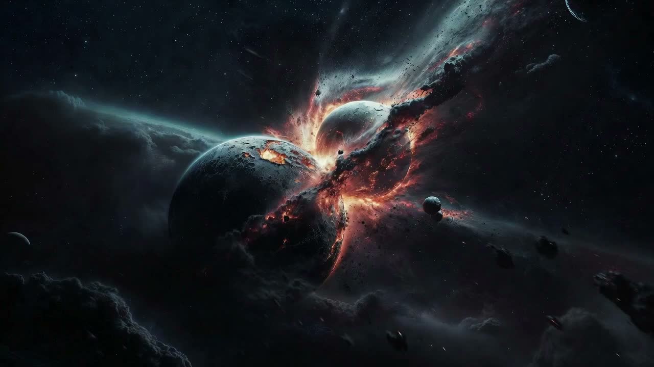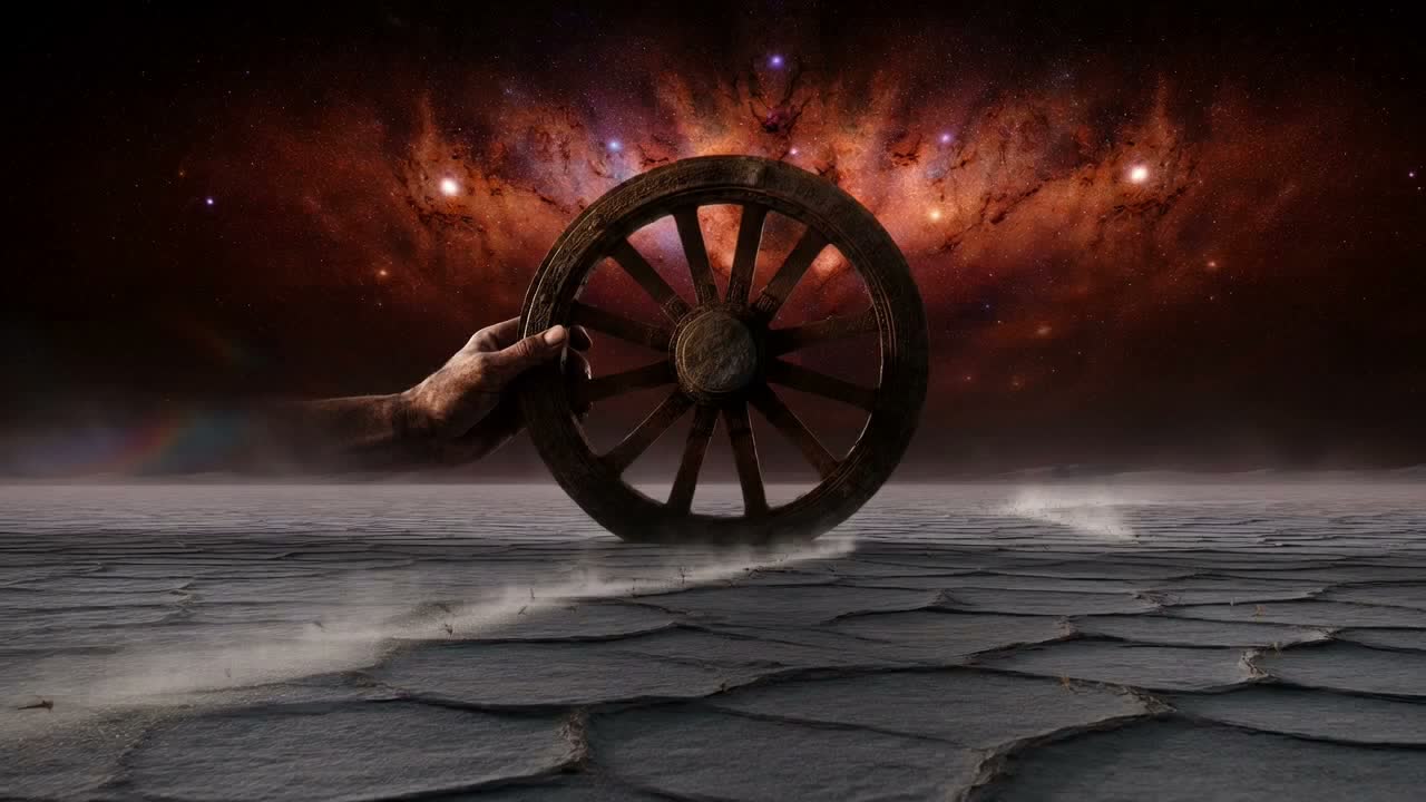 70s progressive space rock, long-form epic, multi-part suite, extended instrumental passages, gradual resolution, no cutoff, orchestral, cinematic orchetra, raw and dusty, Slow heavy pulse like a stone heartbeat in vacuum, Deep bass, dry reverb drums echoing from ancient metal halls, Cracked Hammond organ, detuned guitar groaning like forgotten relics, Analog hiss, worn tape warmth, creeping melody carved from cold iron, Vocals: whispered helmet-static, half-forgotten language, Feels like waking in a dead ship's ruin, stars blind and mute outside, Mystical, ancient weight in zero gravity