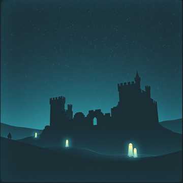 A dark, cinematic progressive rock track in D minor with atmospheric, gothic undertones, Dreamy synths set an eerie foundation, joined by layered guitars drenched in echo delay, Emotional female vocals guide melancholic verses, building dynamically into epic choruses with soaring harmonies and intensified instrumentation, The arrangement alternates lush textures and stripped-back moments, accentuating the storytelling arc, Tempo shifts add tension, while orchestral elements and nuanced guitarwork amplify the epic, emotional impact, ‑male voice, ‑male vocals
