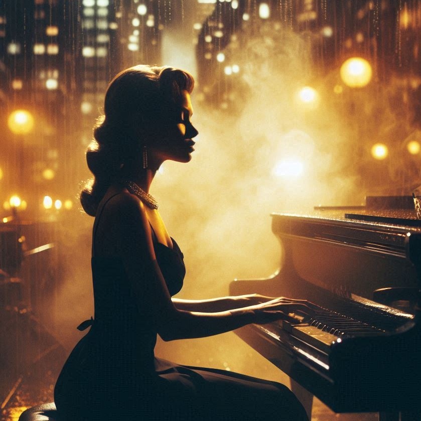 Smooth jazz track led by expressive female vocals and lush piano voicings, Subtle upright bass and soft brushed drums provide a gentle groove, while delicate saxophone phrases fill the spaces between verses and chorus, Piano solos highlight the bridge, creating warmth and intimacy