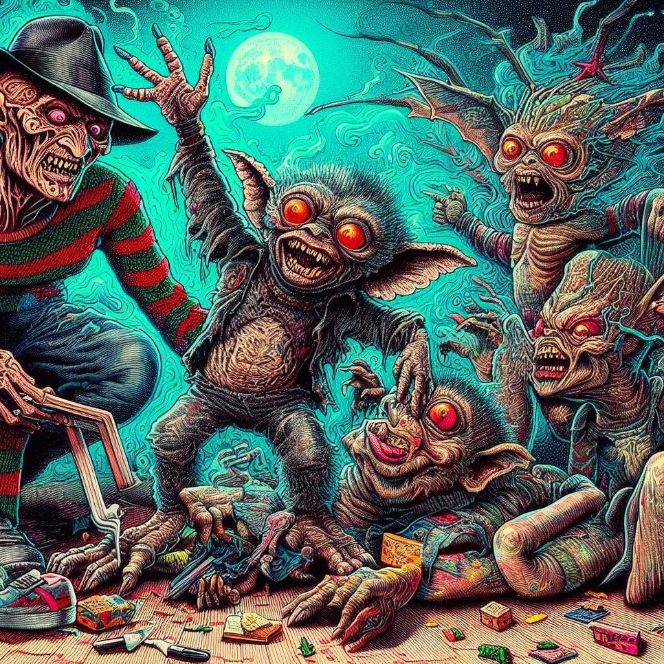horror circus melodies and disturbing italodisco synthwave punkpop folkblues euphorig moog synthwaves, leads, drops and catchy melodies