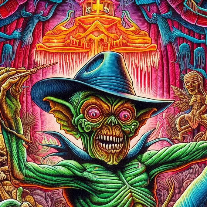 aggressive gangster mafia black stoner deathmetal with criminal mentally insane joker voice and insane melodic catchy harmonic melodies