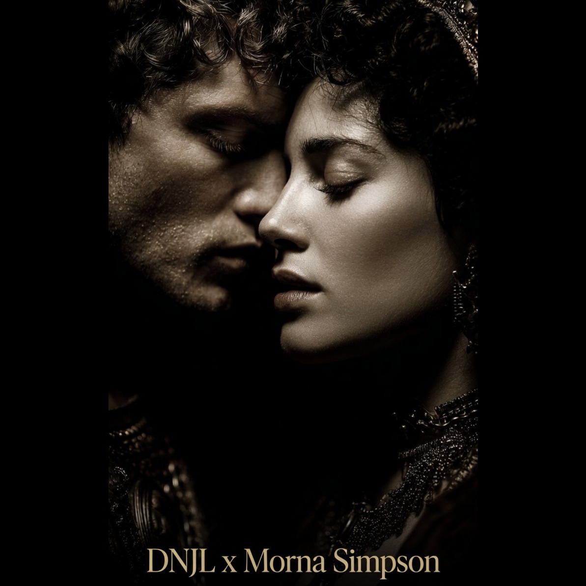 Cinematic dark pop with orchestral and electronic elements, The track features a prominent female lead vocal and a male lead vocal, both with heavy reverb and layered harmonies, Instrumentation includes a deep, distorted synth bass, a slow-tempo electronic drum kit with a heavy kick and crisp snare, and a cinematic orchestral string section providing sustained pads and staccato accents, A clean electric guitar plays occasional melodic fragments, The arrangement builds with atmospheric synth textures and dramatic percussion hits, Key: C minor, Tempo: 72 BPM, Time signature: 4/4