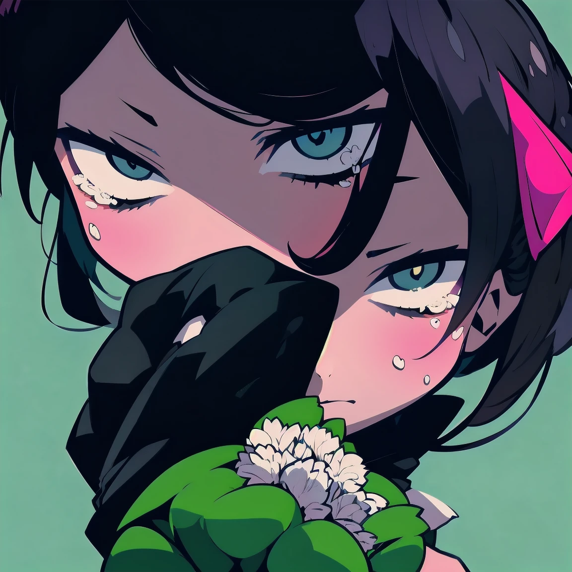 Kawaii Future Bass, Bright & Melancholic, Playful ASMR vibe, bubbly FX, watery sizzle, Scattered cute vocal chops, humming “ふんふん”, Layered supersaw chords with sidechain pumping, Deep but soft sub bass, glitch sparkles, airy pads, Mood: