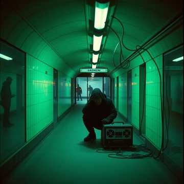 Fast industrial techno, 140 BPM, Air raid siren loop, classic rave warning siren, Underground subway tunnel ambience, passing train rumble, Heavy mechanical kick, metallic percussion, Dark whistleblower theme, paranoid and urgent, Drilling Machines + Alarm