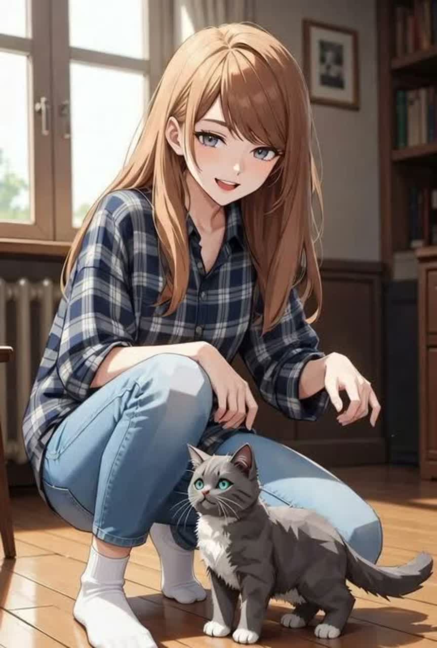 [cozy cat admiration, pure happiness from a kitten encounter, dreamy daydreams of future pet, heartfelt joy, innocent wonder, female perspective tenderness, uplifting everyday magic, warm nostalgic glow]