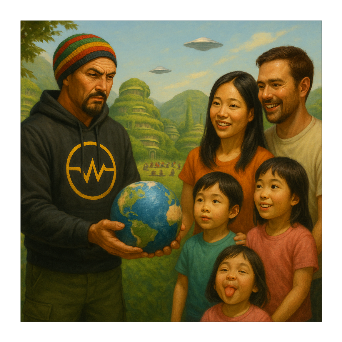 Punchy sub-bass groove, cello, 808 Bass, crisp off-beat synth plucks instead of guitar, tight snare and rimshot combo, syncopated kick pattern, metallic percussion hits, airy vocal chops, cosmic pad textures, deep reverb space – uplifting dancehall energy