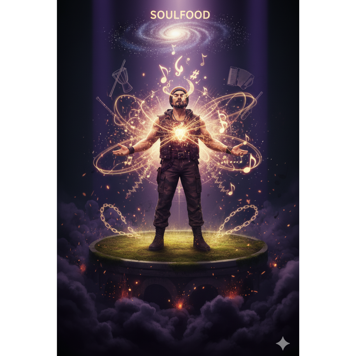 Dirty sub-bass groove, cello, deep 808 Bass, crisp off-beat synth plucks instead of guitar, tight snare and rimshot combo, syncopated kick pattern, metallic percussion hits, airy vocal chops, cosmic pad textures, deep reverb space – uplifting dancehall energy