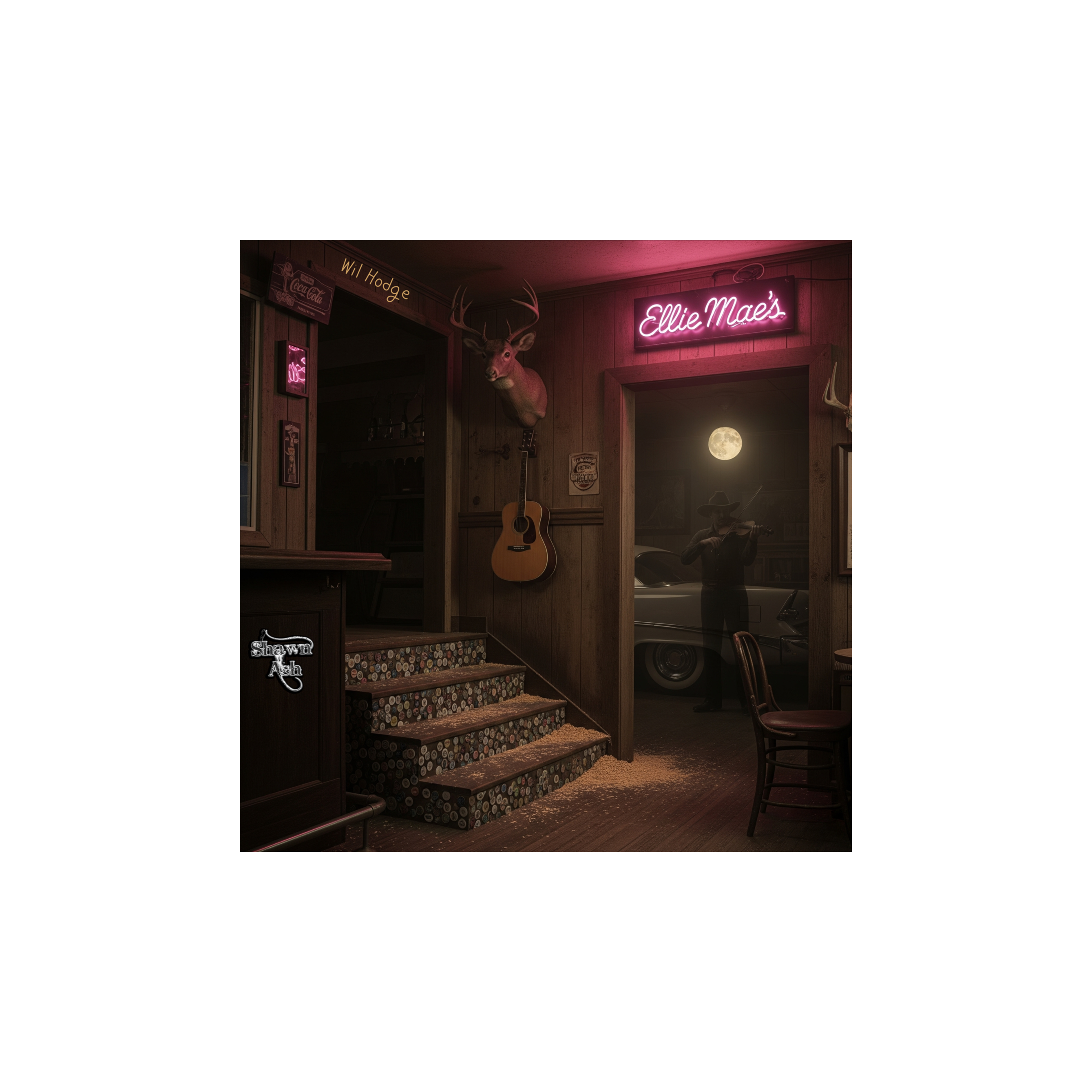 Outlaw country, male lead vocals, guitar, anthemic, heavy drum beat, upbeat, funny, peddle steel, fiddle, piano, atmospheric