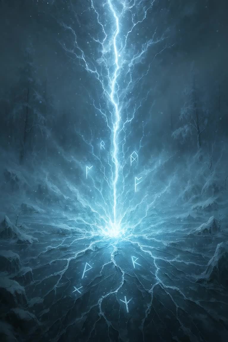 Fast-paced liquid drum & bass anthem fused with trance and cinematic Nordic energy, Features virtuosic lead violin, icy arpeggios, ambient pads, and breakneck DnB rhythms, Female-only vocals move from whispered Old Norse prophecy to soaring, blizzard-like choruses, Fog horns echo through the pre-chorus, marking the rise of Fimbulvetr, Themes of Norse mythology, Ragnarok, and the death of gods are woven into a cold, emotional, and heroic soundscape