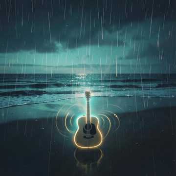 77bpm beach under a rain storm vibe acoustic guitar and rythem Like dub deep house