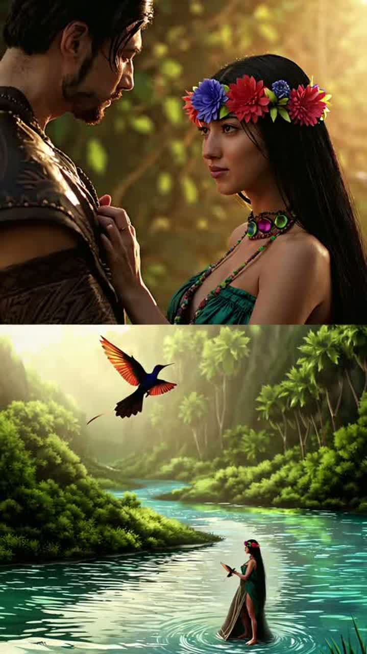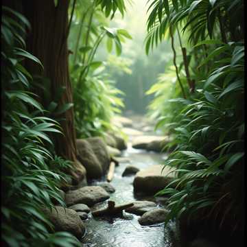 The song begins with gentle clay flutes and subtle rhythmic log drums, establishing a spacious, meditative prehispanic Mesoamerican Aztec palette, Layered ocarinas craft delicate melodic lines, enriched by hand percussion and immersive ambience—birdsong, distant water—creating a tranquil, flowing, organic sweetness