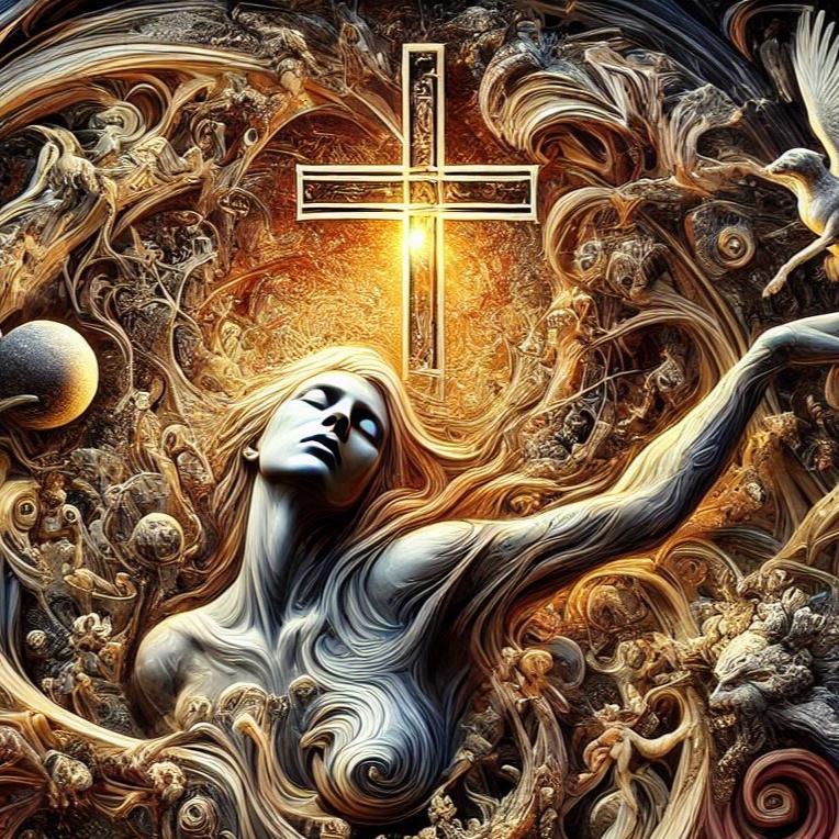 style of Carlos Estella's "Epic Ambient Gregorian Chants" with a twist of the Healing Gregorian Chants", full orchestra, deep psychedelic blues/rock, acid rock/electric blues, sultry guitar rif, ‑Vocals Layer -emotional female symphonic metal vocalists Gregorian Chants style, ‑twist of symphonic, ‑epic soulful male vocals, ‑Latin / echos English, ‑depth and grandeur, ‑twist of symphonic metal