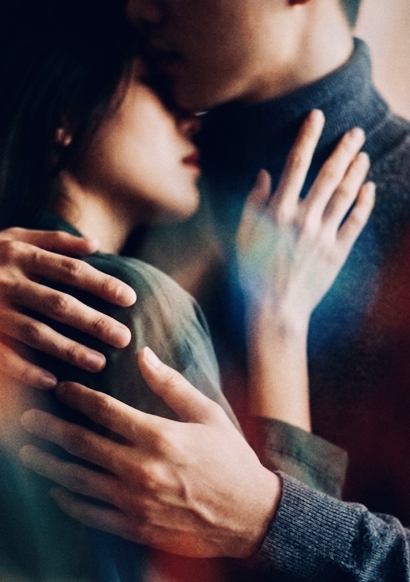 Smooth sensual R&B fused with modern K-pop aesthetics and subtle futuristic textures, Minimalistic yet polished production with an intimate late-night atmosphere, The groove is slow, controlled, and hypnotic—like a steady heartbeat in the dark, Tempo around 74 BPM in a minor key (A minor or D minor), Deep, warm 808 bass sits softly under the mix, never overpowering, Drums are minimal: light trap hi-hats, soft rimshots, and gentle percussive accents, Instrumentation includes airy ambient pads, clean Rhodes or electric piano chords, and subtle muted guitar or pluck accents, Add light glitch textures, reversed effects, and soft vocal chops to introduce a modern K-pop / cyber mood without breaking intimacy, Vocal style: male, soft, intimate, breathy tone with smooth falsetto transitions, Blend melodic singing with light rhythmic phrasing, Emotional delivery is restrained, magnetic, and quietly intense, Lyrics theme: physical closeness as emotional trust—body to body as connection, not just