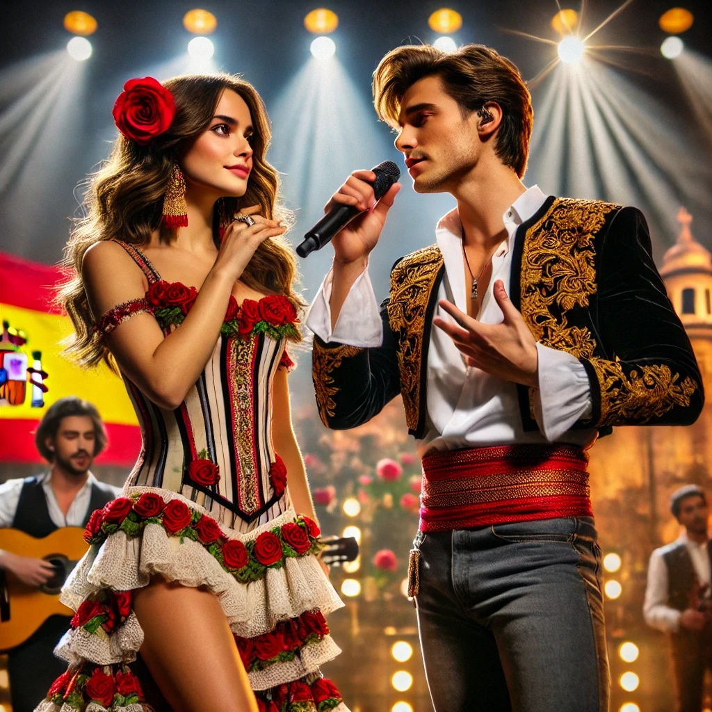 Reggaeton, upbeat guitar riffs, 4/4 reggaeton beat, rhythmic claps, festive percussion, live vocal performance, catchy
