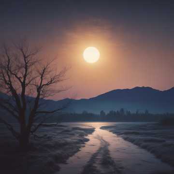 100 BPM/Em, Start: Guitar & darbuka (Em-D-C-B7), Build: Moon rises, Climax: Night glows, End: Dawn near, Key: Moon, desert, night