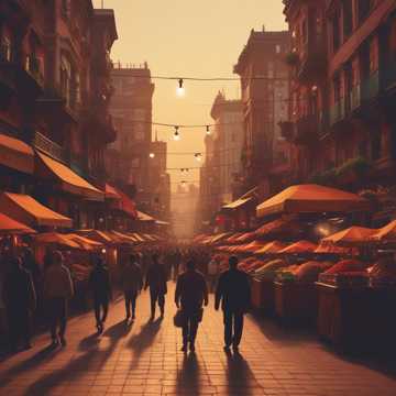 98 BPM/Em, Start: Guitar & darbuka (Em-D-C-B7), Build: Market sounds, Climax: Sun sets, End: Night falls, Key: Sunset, market, spice