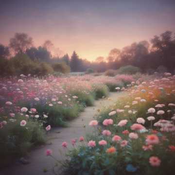 92 BPM/Em, Start: Guitar & santoor (Em-Bm-C-D), Build: Garden awakens, Climax: Flowers dance, End: Peace flows, Key: Garden, peace, bloom