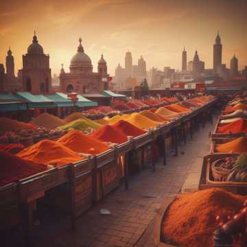 102 BPM/Am, Start: Guitar & percussion (Am-E-Dm-E), Build: Market life, Climax: Spice dance, End: Evening peace, Key: Bazaar, spice, life